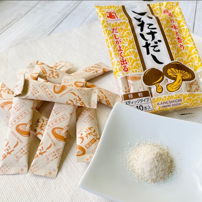 食塩(国内製造)、ぶどう糖、風味原料{しいたけエキスパウダー(デキストリン、食塩、しいたけエキス)、乾しいたけ粉末、かつおぶし粉末}、でん粉/調味料(アミノ酸等)