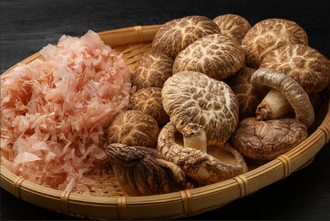 かつお、こんぶ、しいたけ、にぼし、白えび、焼あご
