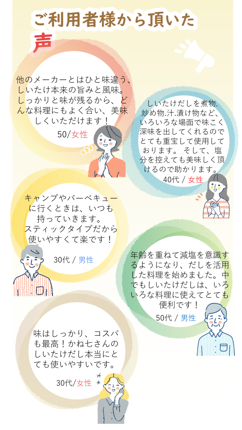 しいたけだしを利用されたお客様の声をいただいたので、紹介いたします。